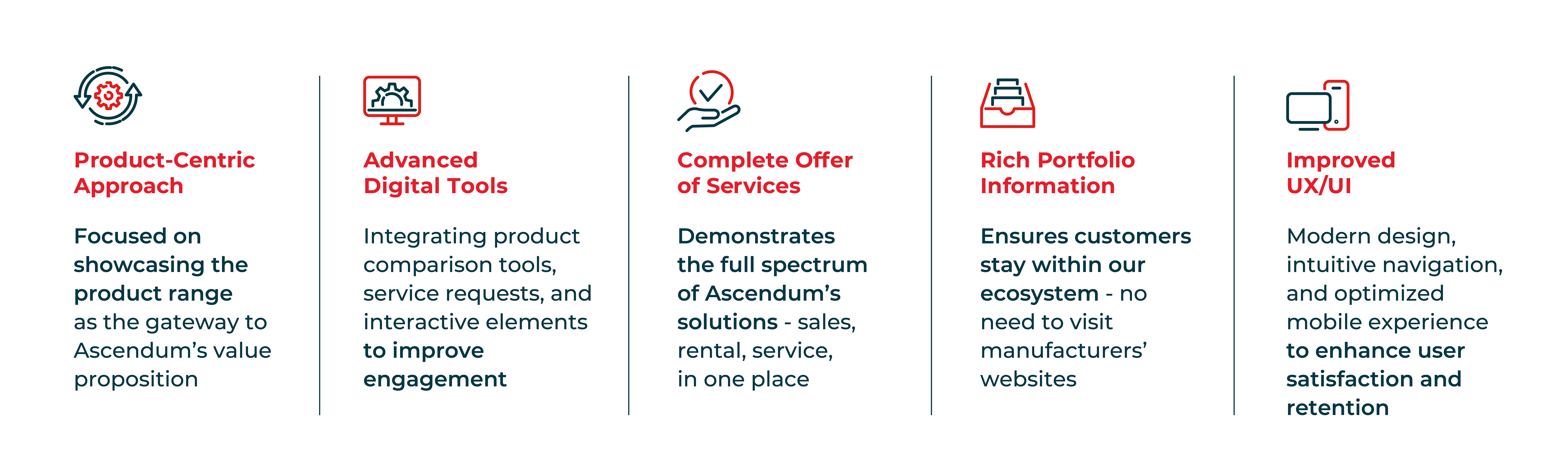 The new website was designed for a Better User Experience. It offers a unified ecosystem where customers can explore everything Ascendum has to offer, with a clear focus on user experience and engagement. It combines a product-centric approach with a powerful digital structure that keeps customers within our ecosystem — ensuring that every interaction strengthens Ascendum’s multi-brand positioning and customer proximity.